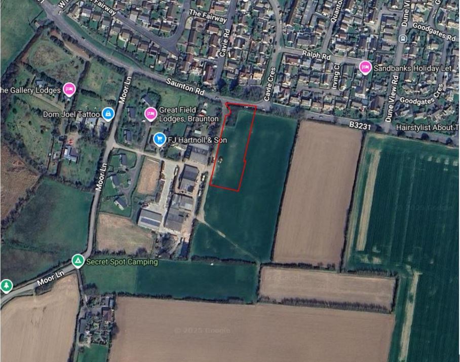 Above: The red markings show where the proposed nine homes would have sat within the Braunton Great Field. Credit: North Devon Council/Google