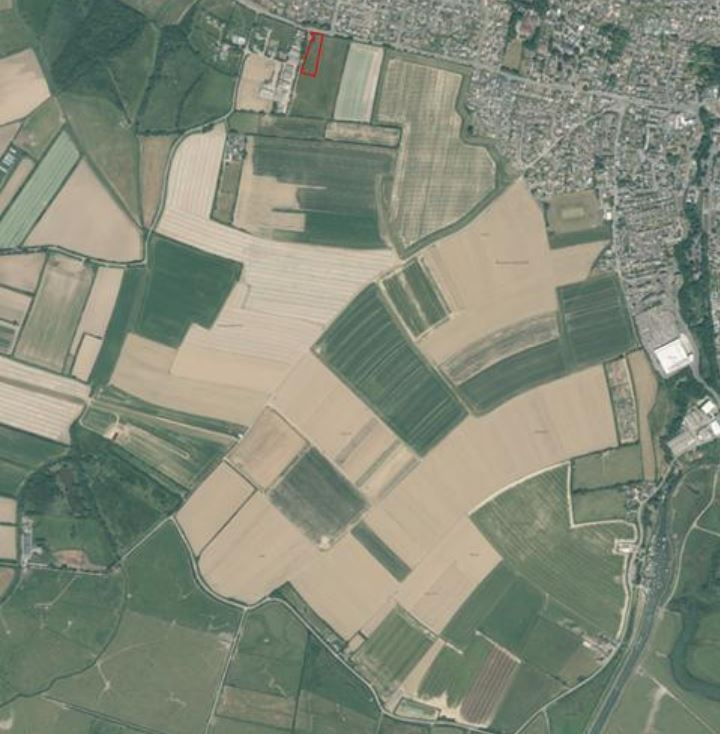 An overview of Braunton with the site proposed for development shown in red in the distance. Credit: North Devon Council/Google