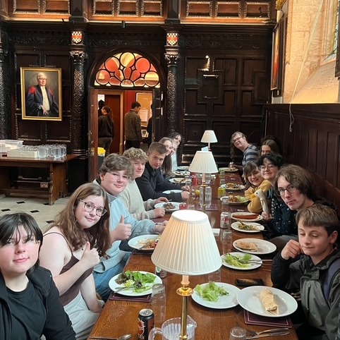 Above: The Ilfracombe visitors sit down for lunch in the refectory at Oxford’s Exeter College. Credit: Athena Learning Trust