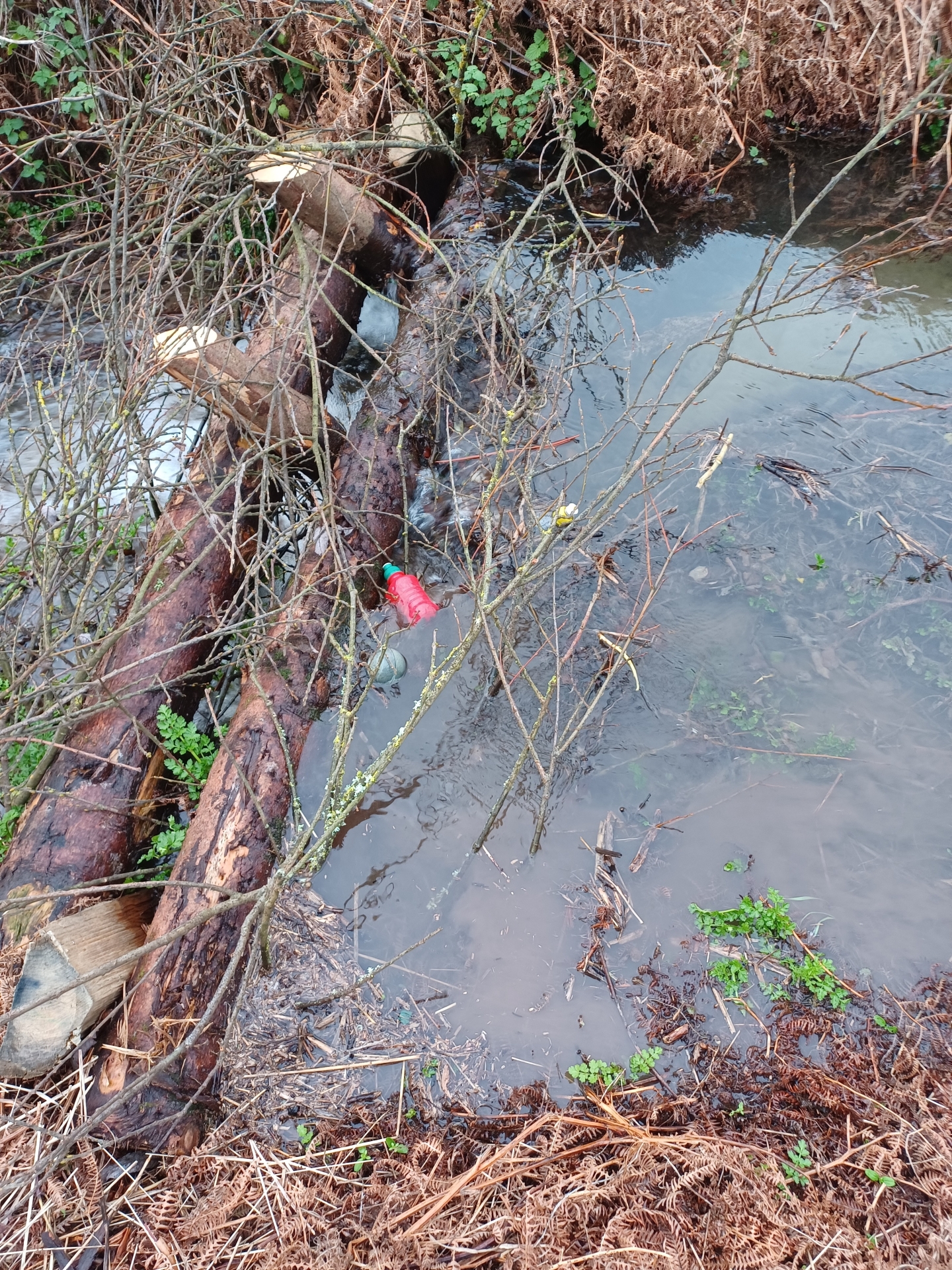 Above: The interventions immediately created a pool effect about the dams, created some flow diversity and caught plastic waste. Credit: National Trust