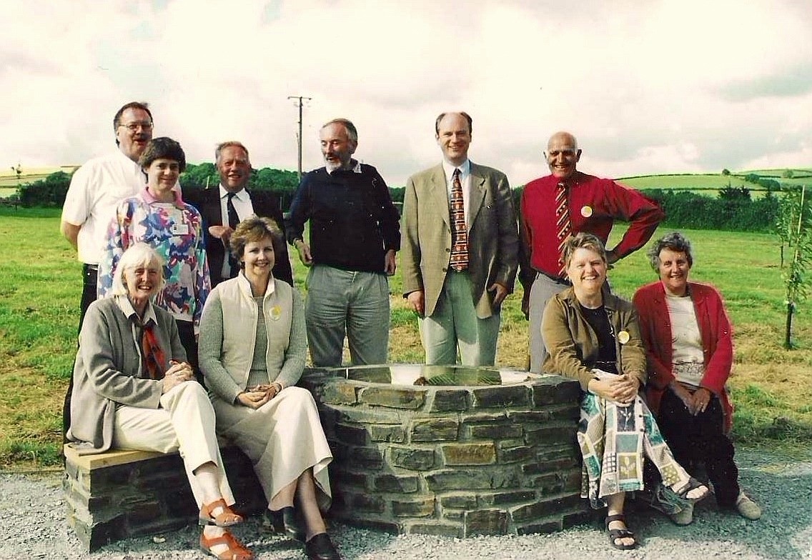 Above: Millennium Green opening day, June 24, 2000. Standing, from left: Dave Butt (district councillor), Kate Ashbrook (a member of the Countryside Agency board and access officer for the Ramblers' Association), Richard (Dick) Joy (Landkey parish councillor), Michael Gee (a planner who played a large part in submitting the funding bid for the green), Nick Harvey MP, Norman Tucker (the farmer on whose land the green was created). Seated from left: Lyn Morton (Landkey parish councillor), Jane Barton (Millennium Green Trust secretary), Karen Trigger (Millennium Green trustee), Mrs Tucker. Credit: Karen Trigger