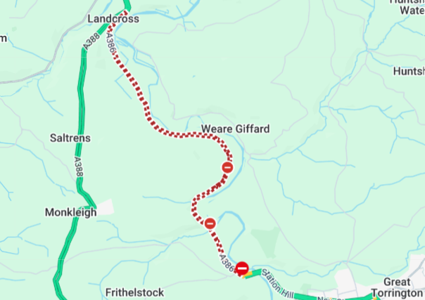 The A386 between Great Torrington and Weare Gifford. Credit: Google Maps