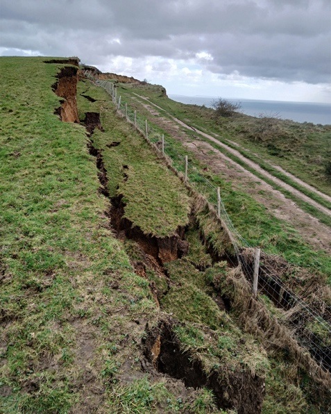 Above: A landslip on the South West Coast Path at Stonebarrow, near Charmouth, which happened this month. Credit: Dorset Council