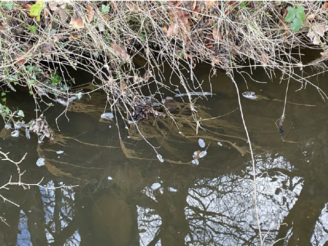 Above: Photographs taken on the day showed sewage fungus in the ditch. Credit: Environment Agency