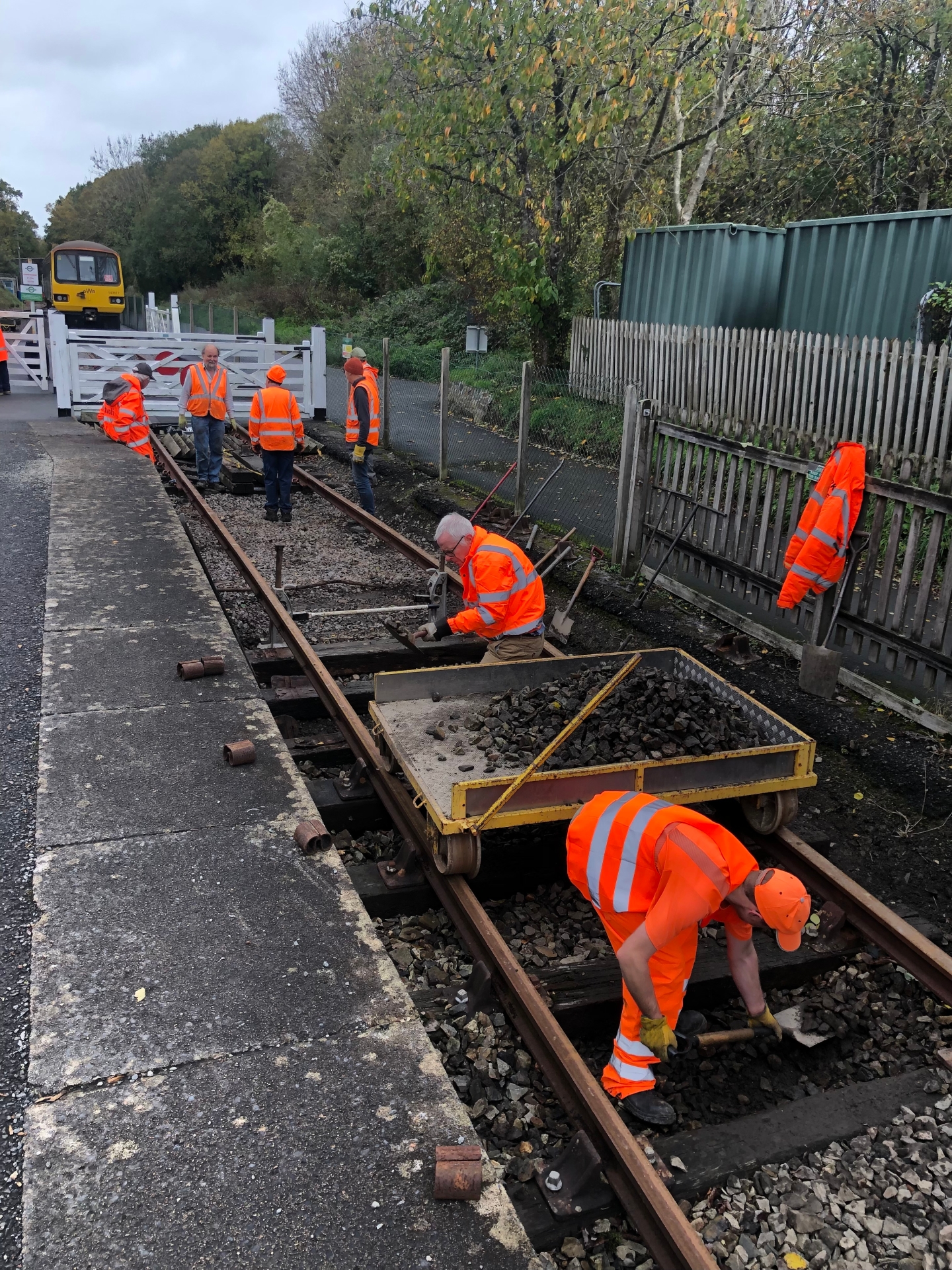 Above: Replacing old sleepers on Tarka Valley Railway heritage rail line at Torrington. Credit: Tarka Valley Railway Group