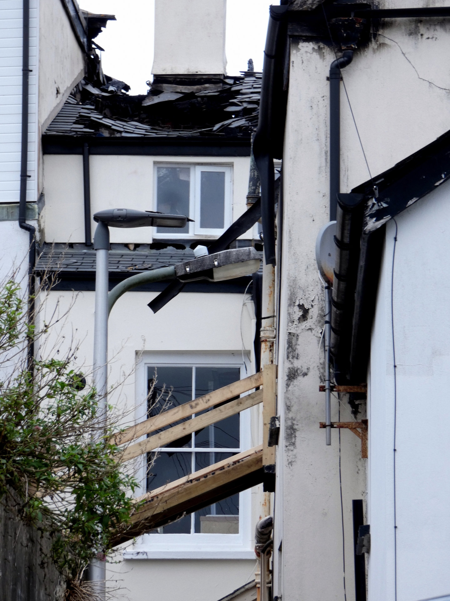Above: Efforts have been ongoing to enable safe entry into the building. Credit: Graham Hobbs