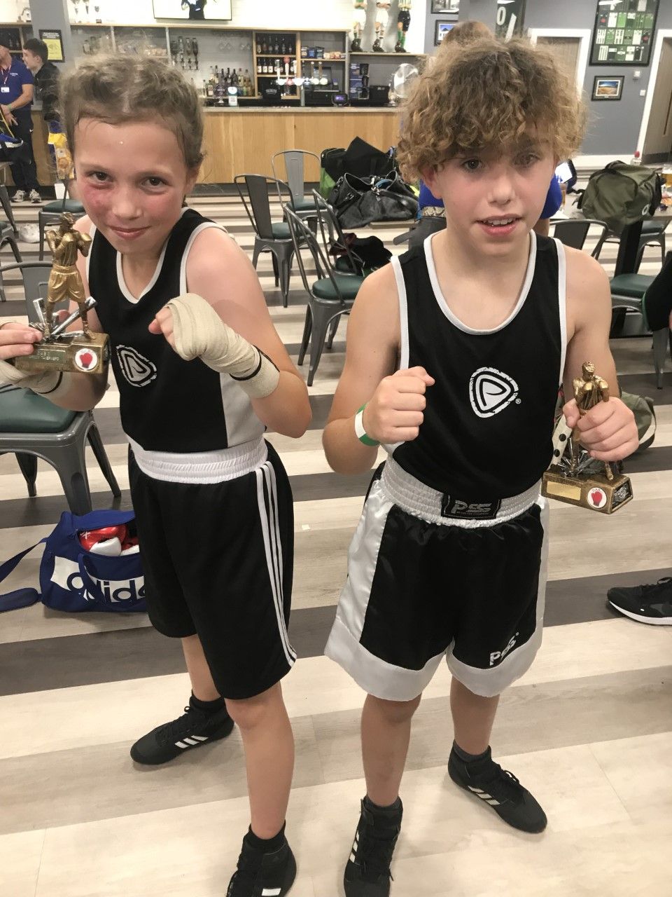 Two young Bideford boxers won at Plymouth Argyle Stadium on Friday night. Ella Peach, 12, dominated Mia Niecharz from Devonport in the first round before stopping her with a straight right cross in the second round. Leo Mcmenamin, 11, won all 3 rounds against Joseph Murray from Devonport, giving him two standing counts along the way.