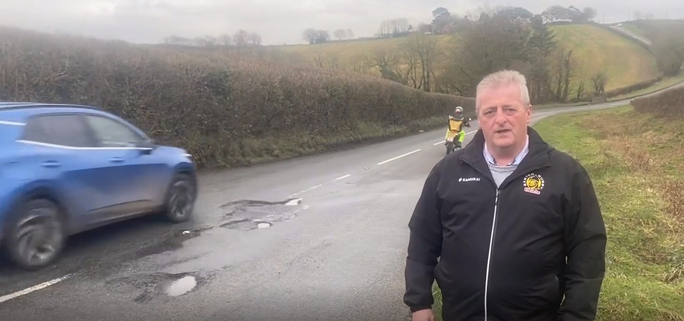 In the video, later posted on Facebook, Cllr Biederman is shown at the side of the road highlighting the situation when a motorbike overtakes a car at speed through a series of potholes.