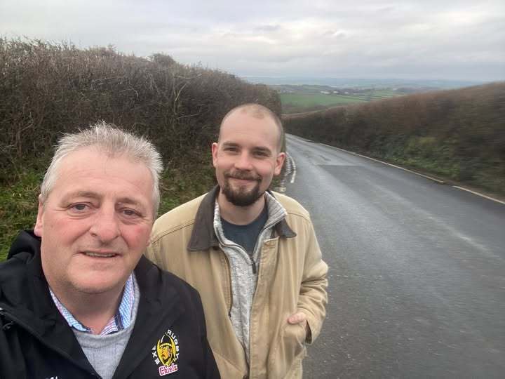 Above: North Devon county councillors Frank Biederman and Ed Tyldesley had been inspecting potholes on the B3233. Credit: Frank Biederman/Ed Tyldesley